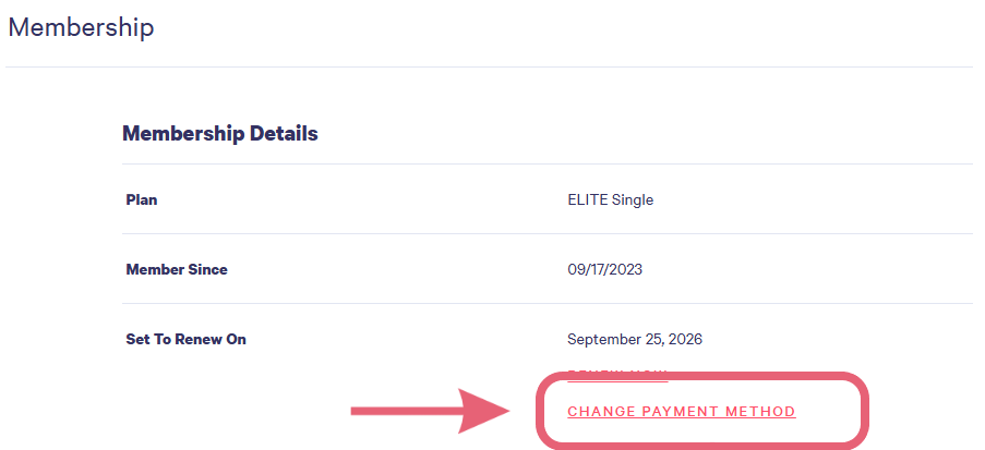 Note: Changing your payment method will not cause your card to be charged. Your subscription will auto-renew on the original date listed on the screen, unless you have cancelled auto-renewal.