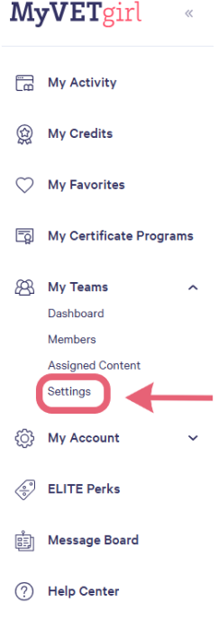 From the Dashboard page, scroll down to the My Teams section. From there, select Settings: