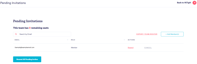 On the Pending Invitations page, you'll see a list of team individuals who haven't yet accepted their email invitation.
